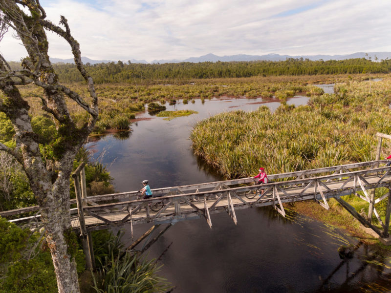 Hokitika to Ross Easy riding with historic railway bridges, wetlands and views of the Southern Alps.